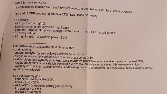 Atenka dziś zakończyła pierwszy cykl chemioterapii.