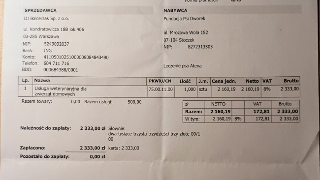 Atenka nie jest psem fundacyjnym, tylko moim osobistym. Ale jest sercem Fundacji Psi Dworek. Razem ją tworzyłyśmy. Od samego początku, a nawet i wcześniej, Atenka była moją prawą ręką, a raczej łapą. To ona wprowadzała nowe psy do istniejącego stada. To ona wspierała nowe psiaki w nowej sytuacji, ona pokazywała wycofanym psom, że człowiek jest ok, ona pokazywała jak fajnie jest na spacerach, ona pokazywała jak żyje się w domu, ona pomagała w wychowywaniu szczeniaków. Pomagała, a teraz sama potrzebuje pomocy.