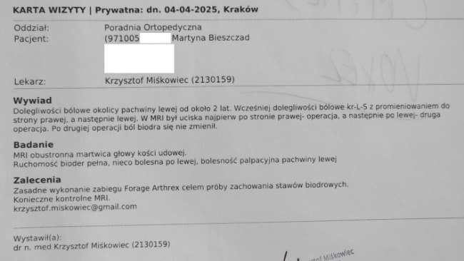 ( ZDJĘCIA DOKUMENTACJI MEDYCZNEJ ZNAJDUJĄ SIĘ NA SAMYM DOLE )