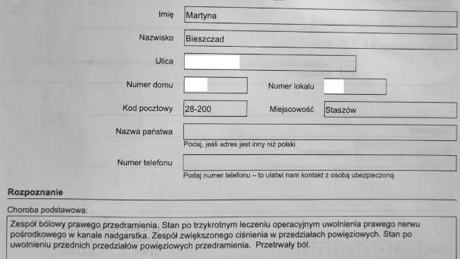 Mam także poważne problemy z kręgosłupem: zwyrodnienia, wielopoziomowe przepukliny, krytyczną stenozę kanału kręgowego oraz bardzo rzadko spotykany zespół Bertolottiego. Te schorzenia powodują ogromny ból, który nie pozwala mi normalnie funkcjonować - bywają dni, kiedy nie jestem w stanie nawet wstać z łóżka.