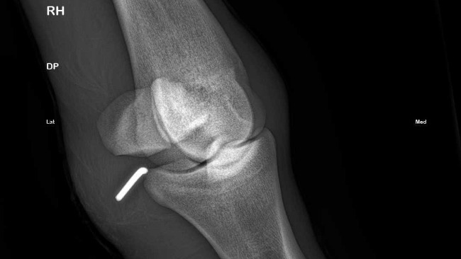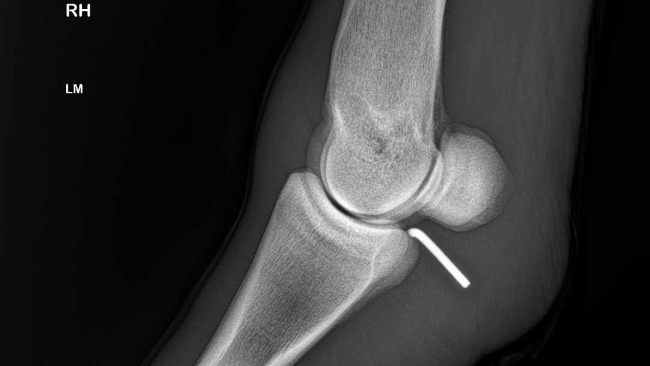 Około godziny 23:00 dotarliśmy na miejsce, gdzie zrobiono Rokiemu zdjęcia RTG nóżki i wtedy nastąpił szok: obce ciało (prawdopodobnie kawałek drutu) wbity w staw. Jak on się tam dostał? Nie mamy pojęcia. Decyzja: Młody zostaje w klinice, rano konsultacja z jej szefem, badanie stopnia zakażenia rany i tel do nas.