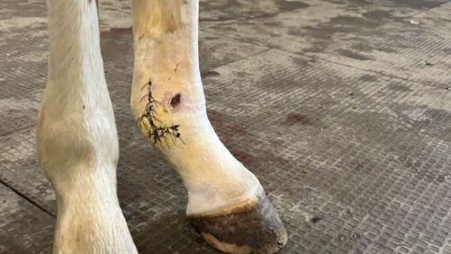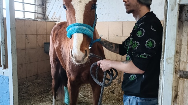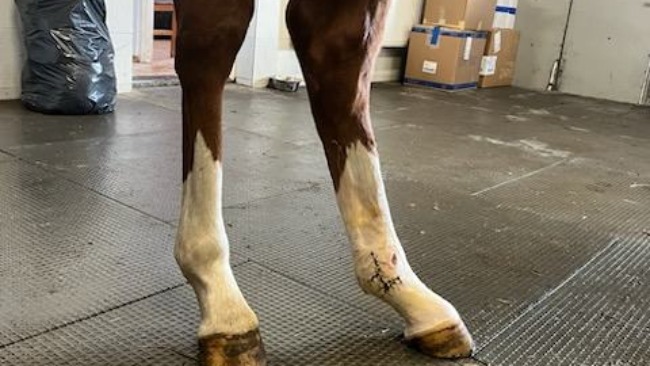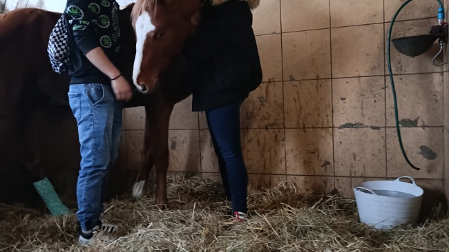Piątek, 01.03.2024 Roquel po zmianie opatrunku w domu. Nóżka troszkę grzeje ale chyba przez opatrunek, rana pooperacyjna ładnie się goi, opuchlizny nie ma, Rudy czuje się dobrze, jest chętny do zabawy, jednak na wyjście na padok musi jeszcze trochę poczekać. Trzymajcie kciuki za jego dalszą drogę do wyzdrowienia🐎