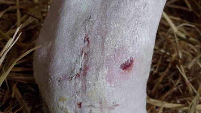 Dziś zdjęto Rudemu szwy. Troszkę podkrwawił ale to podobno nic strasznego. Stoi na nóżce, nie ma opuchlizny, która może się pojawić po zdjęciu opatrunku z powodu zmiany w krążeniu krwii ale to też normalne. Nóżka nie grzeje, więc chyba wszystko idzie dobrze.