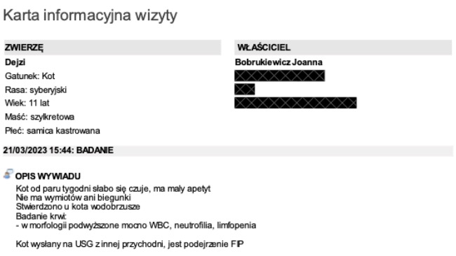 Po podaniu pierwszej dawki leku zauważyliśmy poprawę, jednak w sytuacji dwóch chorych kotów w domu (jej starsza siostra choruje na nowotwór wątroby) - nie jesteśmy w stanie sfinansować całości leczenia.