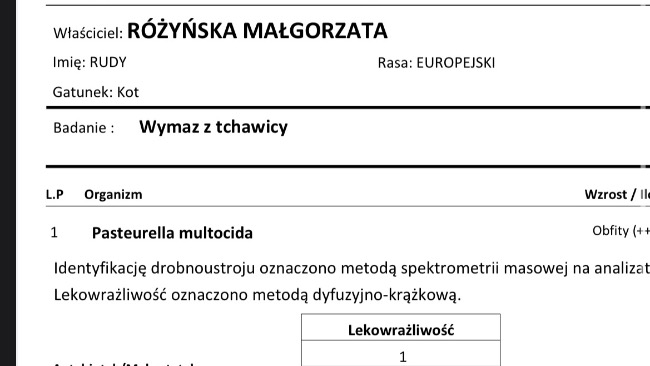 Antybiotykoterapia nie przyniosła niestety efektów, zdecydowaliśmy się na zlecenie autoszczepionki. Jej koszt jednak tylko mnie dobił, bo wynosi aż 265zl. Czeka mnie jeszcze wymaz u dwóch kotów, ale w tym momencie nie jestem w stanie pokryć nawet tych kosztów.