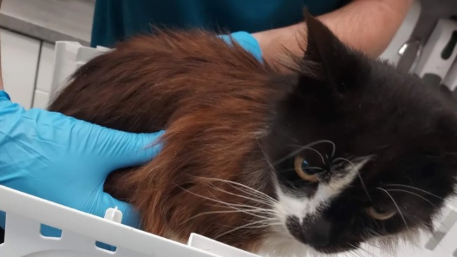 Ogólne wyniki nie są złe. W badaniach wyszły podwyższone parametry nerkowe i podwyższony poziom erytrocytów. Najprawdopodobniej przyczyną jest odwodnienie. Za stan sierści odpowiedzialne są w znacznym stopniu wszoły. Oczywiście jest niedożywiony. Rtg bez zmian. Dostaje antybiotyki i maść na rany na szyi.