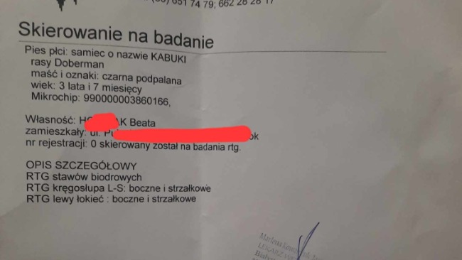 Kabuki to trzyletni doberman .W marcu tego roku uległ upadkowi ze schodów na tarasie ,spadl razem z wielka donica, biegł do psa którego właściciel puścił pod nasza bramę i uszkodził sobie tylne łapy. Ze względu na to, że w marcu tego roku dowiedziałam się ,że mam raka,😭 odwiedziłam tylko weterynarza dostał leki przeciwzapalne myślałam że będzie lepiej w tym czasie miałam swoją operację na raka, ale od niedawna Kabiego stan się pogarsza😞. Są momenty że nie potrafi stanąć na tylne łapy trzeba go podnieść, kuleje jest mu ciężko ,schudł na tylnych łapkach bardzo ,masa mięśniowa jest niewielka. Ja nadal jestem podczas terapii walczę ,parę dni temu wyszłam ze szpitala chciałabym pomóc mu, ale nie stać mnie 😞 ze względu na moją chorobę . Nie mogłam podjąć pracy która również miała być od marca. Nie mam środków na to żeby go ratować i bardzo proszę o pomoc Każde 5 ,10, 20zl przybliża nas do sprawności. Błagam, nasz kochany Kabuś musi być zdrowy.
