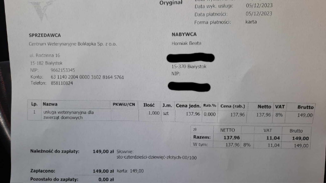 Musimy na szybko zebrać pieniażki na diagnostykę krew i rtg w narkozie to koszt okolo 510zł