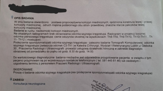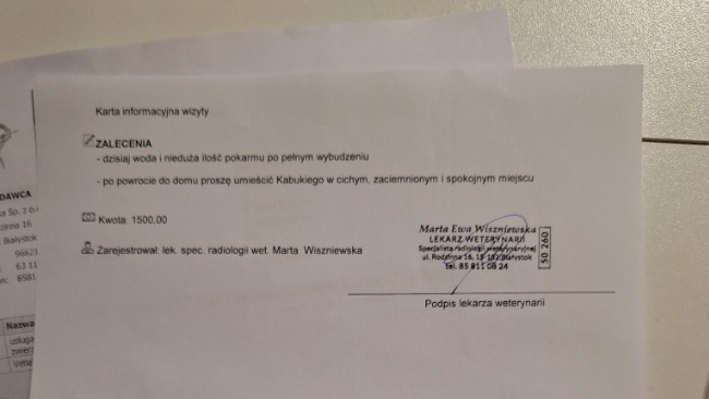 Dziś Kabuki był u kolejnego lekarza tym razem profesor Adamiak ortopeda chirurg neurolog , wstępna diagnoza : spondylomielopatia odcinka szyjnego. Przed nami kolejne badania tym razem tomograf i kolejne badania krwi. Jeśli się potwierdzi niezbędna bedzie operacja.