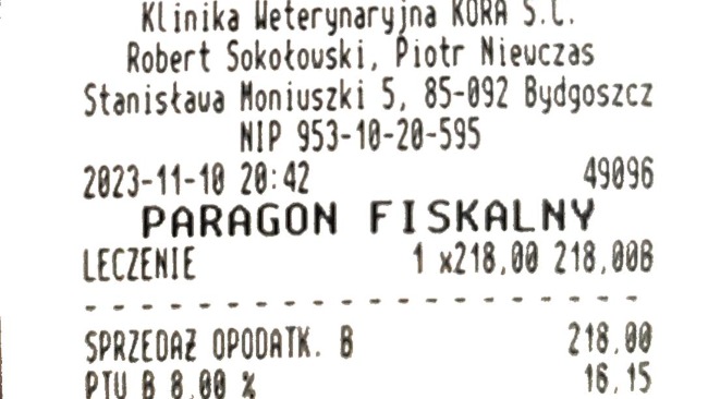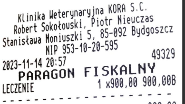 W dalszej części załączam paragony z kliniki dotyczące części leczenia.