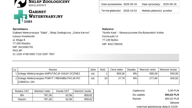 Byłoby nam lżej, wiedząc że faktura za zabieg usunięcia oczka jest opłacona i że mamy za co zaciągać weterynaryjne zobowiązania na jej leczenie i kolejne wizyty.