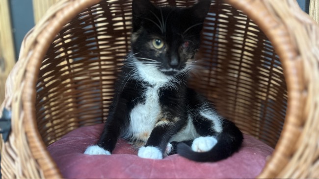 Nie znamy jej historii, ale wiemy że wzięta na ręce mocno się wtula i słodko mruczy. Jak tylko się ją odstawi na ziemię ucieka w panice. Kocha inne kotki, zabawę, wygłupy i wiemy, że bardzo chce żyć.