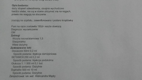 Wczorajsza wizyta 150zł.