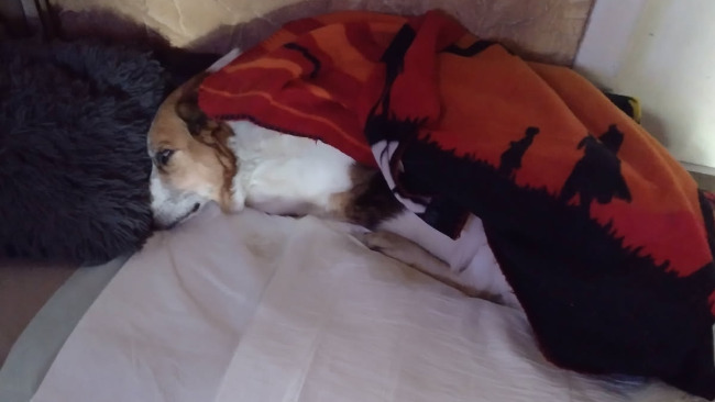 Jestem pieskiem mieszańcem. Mam na imię Kubuś. Biały w brązowe łatki jak widzicie na zdjęciach i filmie. Urodzinki mam w walentynki. Mam czternaście wiosen i ciągle chcę żyć bo nie wyglądam na swój wiek i nie czuję się na te lata. Dotychczas uwielbiałem aktywny tryb życia. Biegałem, skakałem na gałęzie drzew, szczekałem na inne pieski, pilnowałem mojego domu, bawiłem się z moim Panem i Panią. Tak mam Panią i Pana, którzy mnie bardzo kochają i mam swój domek to dla pieska bardzo ważne!... Chcę jeszcze długo żyć bo nie czuję się zmęczony życiem psim, a tęczowy most jest dla mnie miejscem odległym i nie spieszno mi do niego by go przekroczyć... Mam tu jeszcze tyle do obszczekania... No i kocham spacery z moim Panem codzienne i długie, a moja ukochana Pani zawsze ma dla mnie dobre jedzonko bym nigdy nie był głodny... Bym był silny i zdrowy... No ale niestety przytrafiło mi się coś strasznego... Prawdziwe psie nieszczęście... Nie mogę chodzić, biegać!... To straszne!... I sam nie wiem dlaczego mi się to stało... Nagle zacząłem upadać bezwładnie aż w końcu już nawet nie mogłem stanąć o własnych siłach na moich czterech łapkach... Buuu!... Teraz jest mi bardzo smutno i moim opiekunom też... Nie mogę chodzić... Leżę na swoim legowisku... Piję wodę na razie po troszeczku, bo więcej nie mogę bo zwracam... Siusiam pod siebie bo nie mogę wstać o własnych siłach... Jeść mi się nie chce taki jestem przestraszony tym co mnie spotkało... Sparaliżowało mi moje cztery kończyny i nie wiem czy jeszcze wstanę... Bardzo chciałbym biegać... Chodzić na spacerki... Z moim Panem i Panią... Próbuję się podnieść i nie mogę... Pan Doktor odwiedza mnie i daje mi zastrzyki na wzmocnienie i żeby nic nie bolało... Słyszałem, że jest szansa bym mógł znów chodzić, ale muszę przejść długotrwałe leczenie... Moi opiekunowie mnie nie opuszczą bo chcą mnie dalej widzieć biegającego na czterech łapach... Ja bardzo chcę by tak się stało... Niestety moich opiekunów nie stać na długotrwałe leczenie mnie mimo, że robią wszystko żeby mi pomóc stanąć na czterech łapkach. Bardzo proszę wszystkich o dobrych wielkich sercach dla zwierząt o pomoc w moim leczeniu bym mógł stanąć znów na czterech psich łapkach. Jeśli ktoś może pomóc mi i moim opiekunom przejść przez długotrwałe leczenie mojego schorzenia, to moje psie życie będzie mu wdzięczne do końca tak jak i wielka wdzięczność będzie ze strony moich ukochanych opiekunów dla każdej osoby pomagającej mi w walce z chorobą!... Z moich oczu płyną mi teraz łzy smutku i rozpaczy, że nie mogę się poruszać jak wszystkie inne zdrowe pieski...