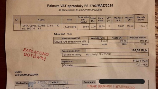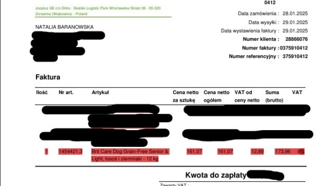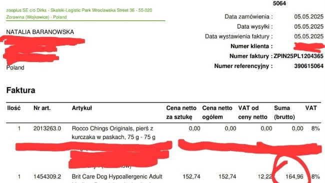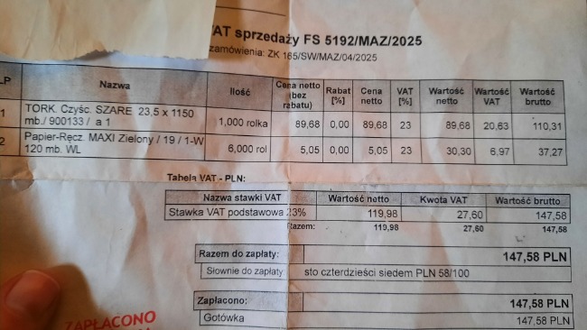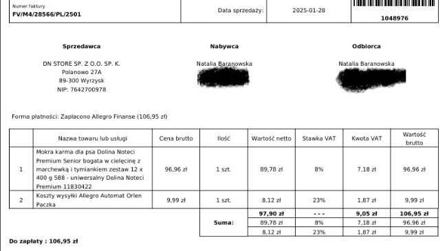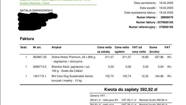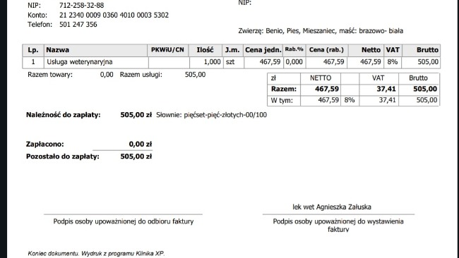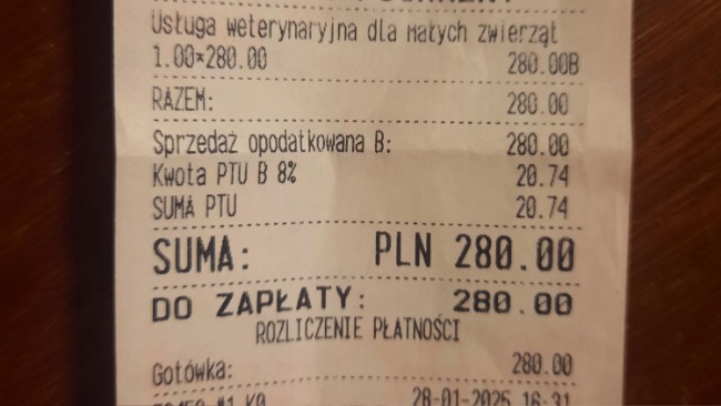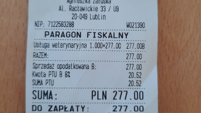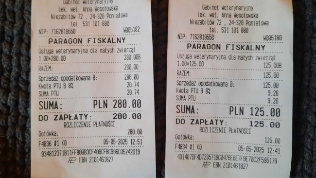 Paragony za ostatni zastrzyk Librellą i kapsułki Flora Balance oraz simparica.
