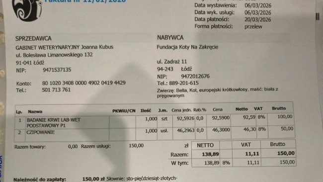 Z całego serca prosimy o pomoc w pokryciu dotychczasowych faktur! Liczymy na to, że wkrótce uda nam się zakończyć leczenie Belli, a ta szybko odnajdzie swoje kochające miejsce na ziemi!
