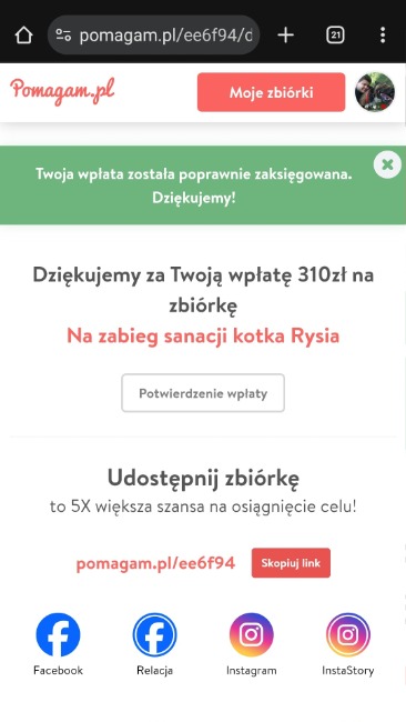 Dziękuję za każdą, nawet najmniejszą wpłatę, udostępnianie oraz pomoc w transporcie do przychodni ❤