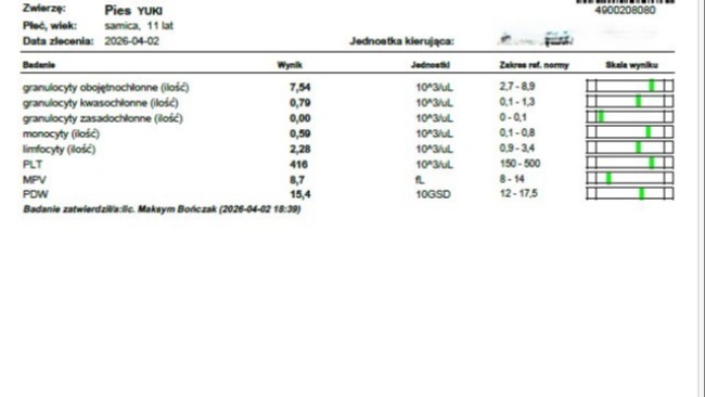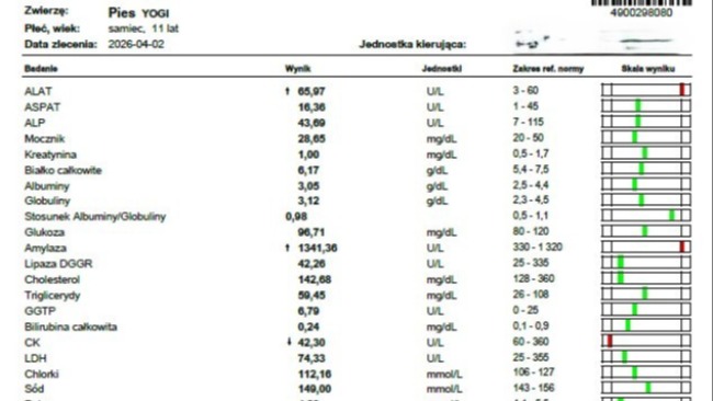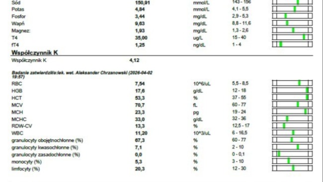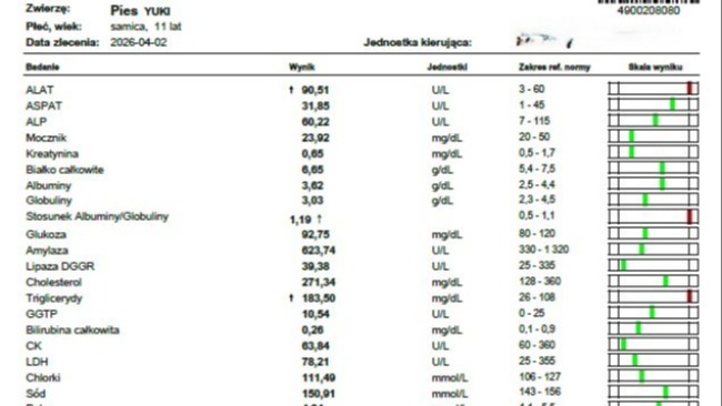 Na tę chwilę ogólnie wszystko jest w porządku. U Yogiego wyszedł już za wysoki parametr tarczycy. W związku w tym obniżamy dawkę leku.