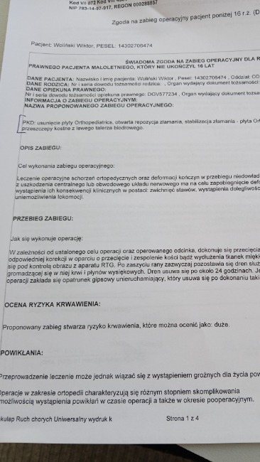 Jesteśmy przed kolejną operacją po której będzie Wiktorek wymagał rehabilitacji .