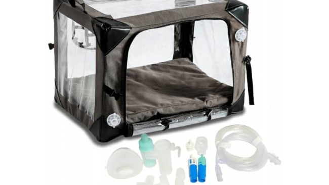 Nasz mała Kicisława zachorowała, katar przeszedł w zapalenie płuc, aby uniknąć potrzeby jej przebywania w szpitalu pod tlenem zamówiliśmy klatkę tlenową, można w niej także przeprowadzać nebulizację, jest to mniejszy stres dla kotów. Klatka będzie wykorzystana także przy innych kotach i jesto to zakup, który praktycznie zwaraca się juz za dobę tlenoterapii w klinice.