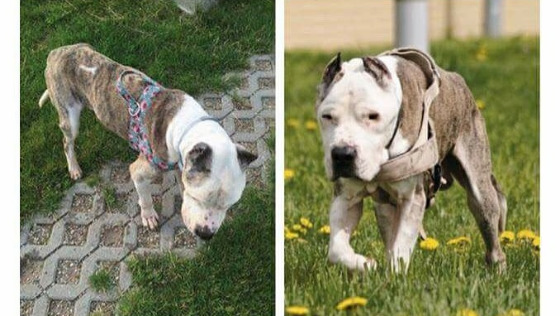 Zeus- 15 letni amstaff trafił na starość do własnego domu- pod Koszalinem.