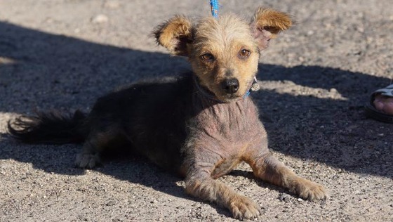Ciche psie cierpienie na maleńkiej wsi pod Radomskiem zostało zauważone i zgłoszone do Łódzkiego Towarzystwa Opieki nad Zwierzętami. Maleńka sunia wielkości yorka od wielu miesięcy znosiła ból i potworne swędzenie wywołane nieleczoną chorobą skóry. Pies nigdy nie był u lekarza weterynarii, nigdy nie widział też świata poza granicami łańcucha do którego był przymocowany. Nieporadność życiowa właścicielki, brak środków i świadomości o mało nie doprowadziły do śmierci ok. 2 letniej suni. Inspektorzy ŁTOnZ po przybyciu na miejsce podjęli decyzję o natychmiastowym odbiorze zwierzęcia. Teraz czeka nas długa i kosztowna droga do zdrowia psiny. Sunia od razu trafiła do lecznicy weterynaryjnej gdzie będzie miała wykonany komplet koniecznych do diagnozy badań i otrzyma odpowiednie leki. Zgreduszka, ważąca kilka kilogramów psina błagała o udzielenie jej pomocy. Sunia cały czas się drapie przez co powstają rany. Ratunek przyszedł w ostatniej chwili.